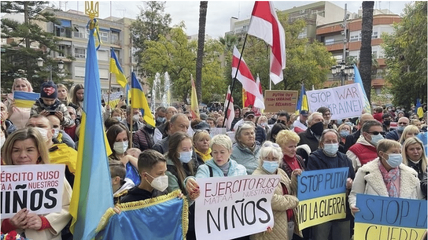Des chants tels que « Poutine est un meurtrier ! », « L’Ukraine veut la paix ! », « Merci l’Espagne, merci Torrevieja ! » et « Slava Ukraini, Heroyam slava ! » (« Gloire à l’Ukraine, gloire aux héros ! ») ont retenti pendant que les participants chantaient l’hymne national ukrainien.
